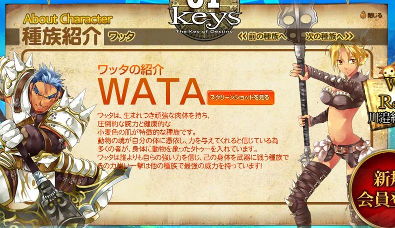 81keysには、ヒューマン・ルル・ワッタ・ニッティという4種類の種族がいます