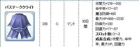 マントはなかなかの性能かな?チョコラと同じくらい?